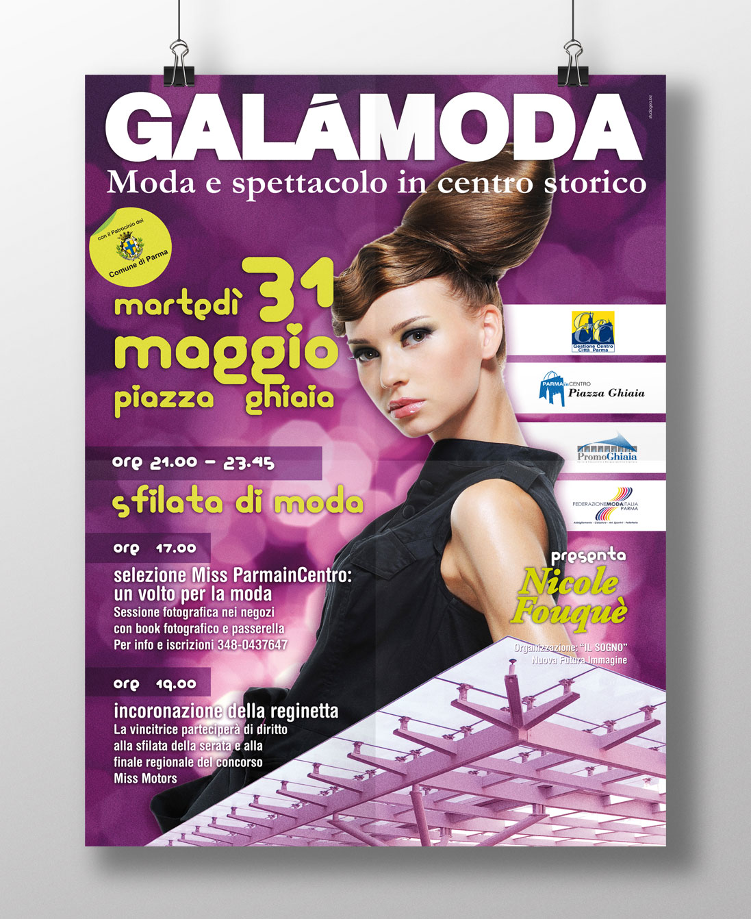 Promotori pubblici e privati, associazione di commercianti, Federazione Moda, insieme per organizzare sfilate di abbigliamento fashion o sportivo, passerelle di miss e concorsi di bellezza, sessioni di trucco e hair stylist in piazze e spazi pubblici ogni volta diversi.